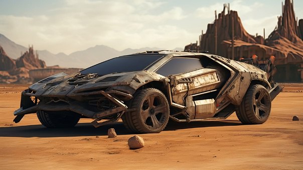 Так выглядит Ламборгини во вселенной Mad max глазами нейросети.